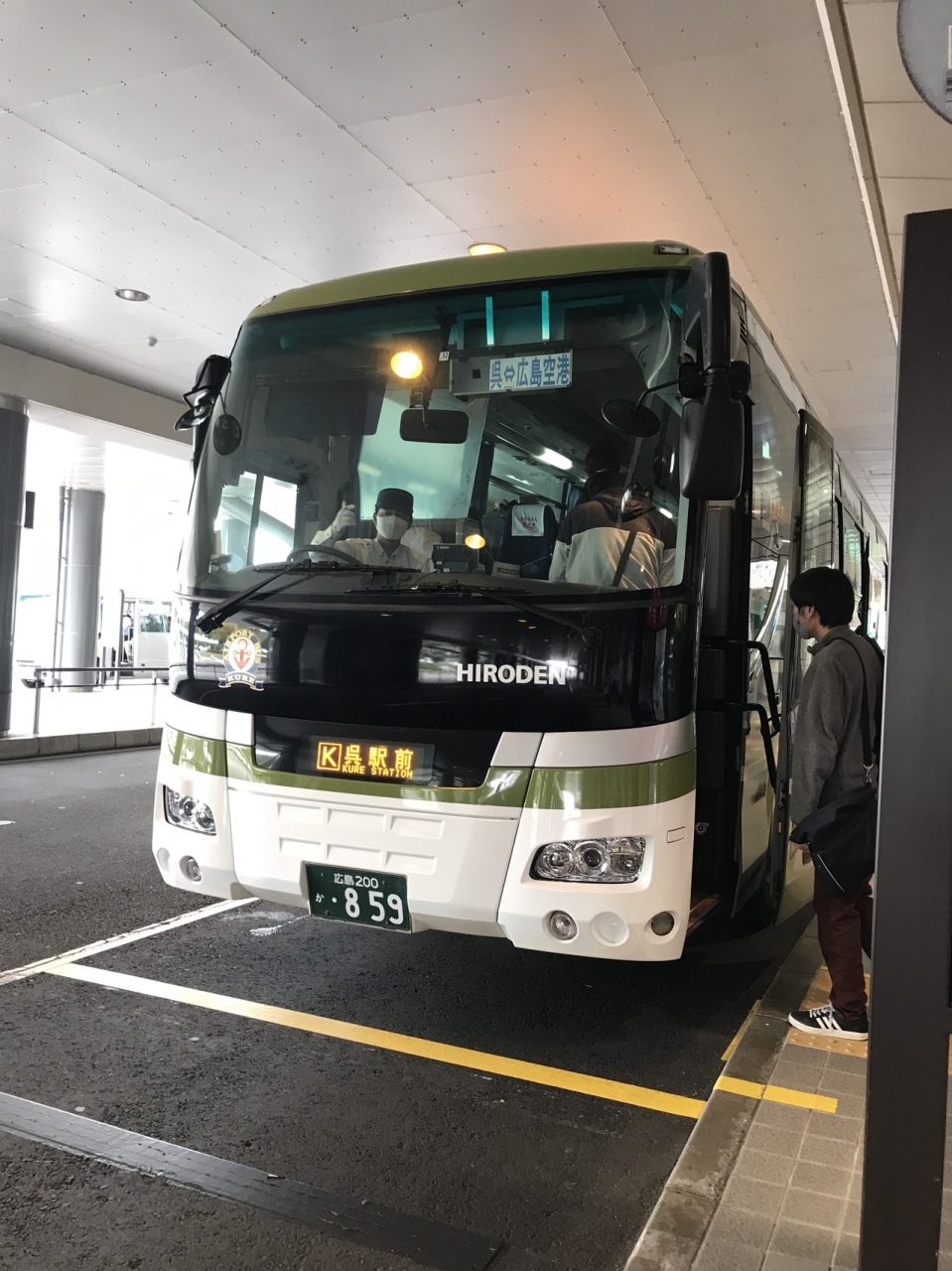 山陽道高屋JCTから東広島呉道に入り、呉市内までは約1時間。広島空港発のみ希望するとJR新広駅に迂回してくれる(デマンド運行)