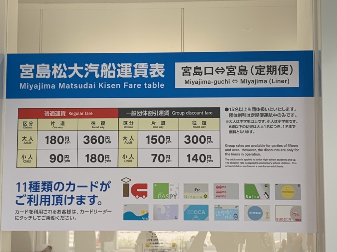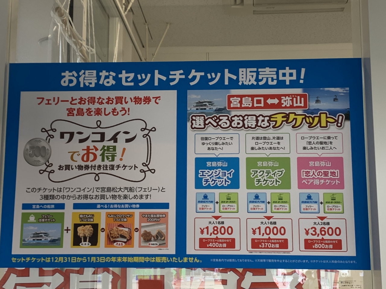 お得なセットチケットがある宮島松大汽船がオススメ。500円で往復券ともみじセット