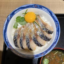 天丼をメインとして麺とのセットメニューなどもありました。今回は、SABARとコラボした漬け鯖丼をいただきました。まずはそのまま頂いたあと、卵に絡ませながら鯖を楽しむ事ができました。時間が無いときにも利用しやすいお店です。