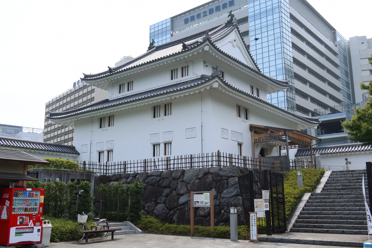 駿府城公園の南東部角の濠に面した場所にある櫓が坤櫓です。4年前に復元した二層三階の隅櫓で、有料ですが内部を見学することができます。木造で復元されており、一部はガラス張りになっているため当時の櫓の構造が手に取る様に分かります。