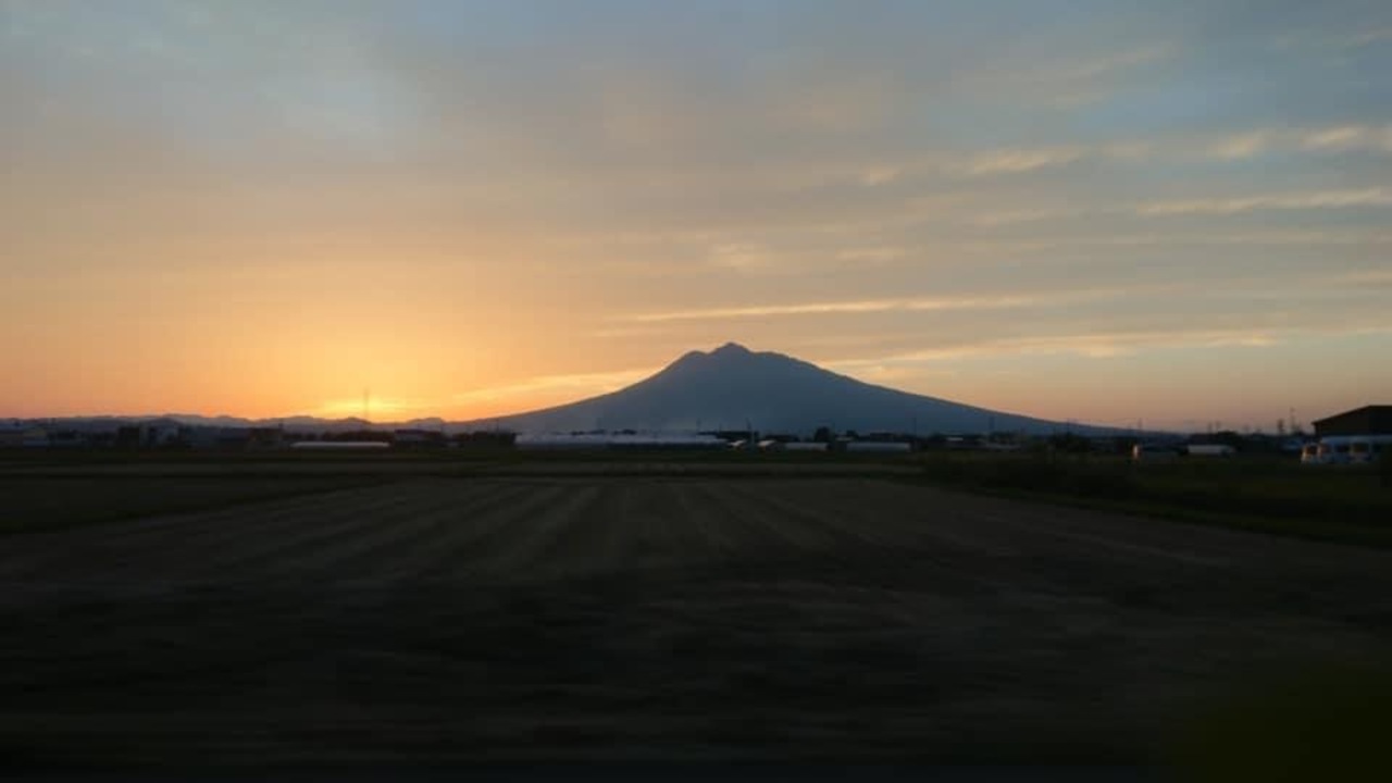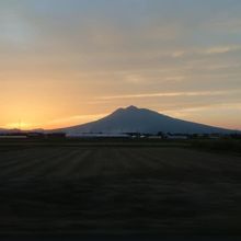 いつもきれいな津軽富士ですが、夕焼けの津軽富士もまたきれい。行が降る前の秋の岩城さんは、紅葉も素晴らしく栄え、日本らしい姿を見せてくれます。この山は、とてもかっこいい形をした夜まで、毎日眺めていても飽きないくらい凛々しい姿です。