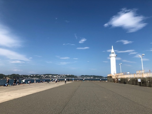 江の島ヨットハーバーの奥にある、まっ白でスマートなフォルムの灯台です。桟橋の先に立っているので、周辺には建物など遮るものがありません。江の島の東端に突き出したところにあるので、片瀬海岸東浜から逗子、葉山の海岸まで、湘南の海岸が一望できます。