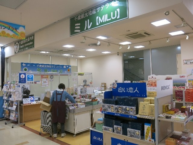 JR千歳駅(ステーションプラザの1階)にある観光案内所兼物産展です。地域特色豊かな商品、千歳限定のオリジナル商品などを