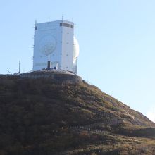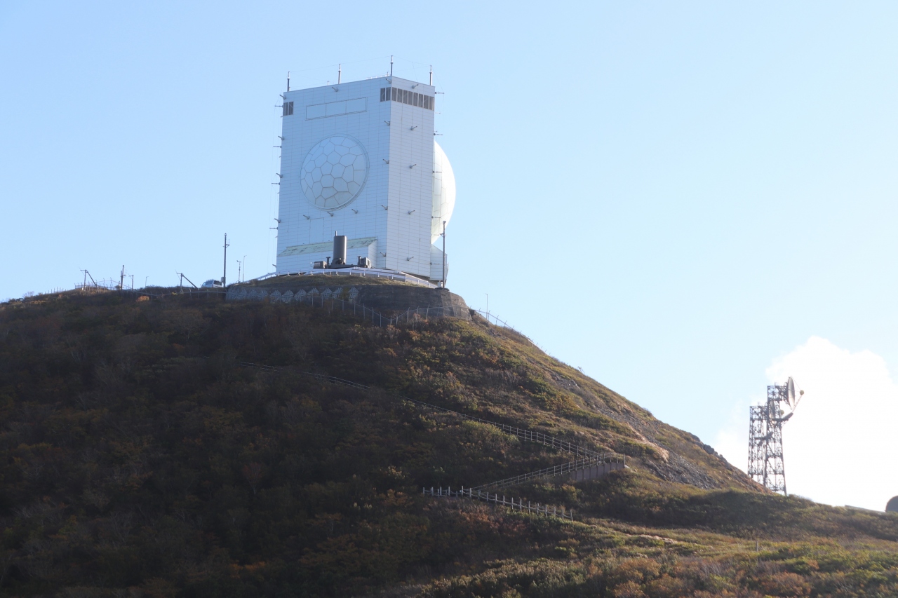 むつ市内にある標高878.2メートルの山です。下北半島の中心部にあるので、ドライブ中よく見えました。特に山頂の大きな建物が目立ちます。ちょっと目障りのような感じもしますが、防衛庁のレーダー施設だそうです。恐山からも見られました。