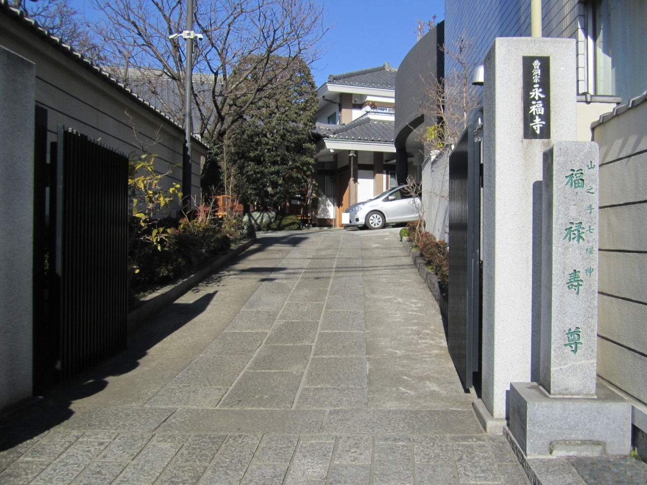 永福寺は、東京都新宿区新宿7丁目の抜弁天の交差点のそばにあるお寺です。「新宿山手七福神めぐり」の福禄寿を祀っているお寺ですが、一見、普通のお寺に見えました。