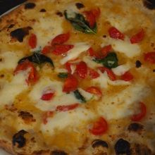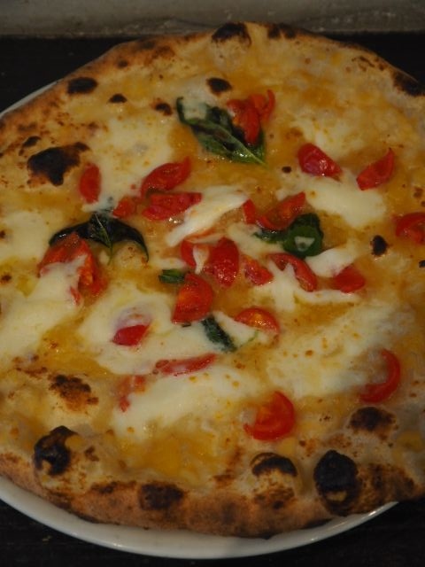 黄色いサンマルツァーノトマトソース、モッツァレラチーズ、ミニトマト、バジリコをトッピングしている。通常のマルゲリータの赤・白・緑に、黄も加わり、カラフルなピッツァになっている。