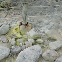 地獄ってこんな感じ?というような感じのイメージの場所で、あちこちに黄色い硫黄で縁取られた噴出口があり、湯気がシュワシュワと湧いて出ています。一応ロープが張ってありますが、かなり噴出口のそばまで近寄れます。地球の力はすごいな、と想像をかきたてる場所だと思います。