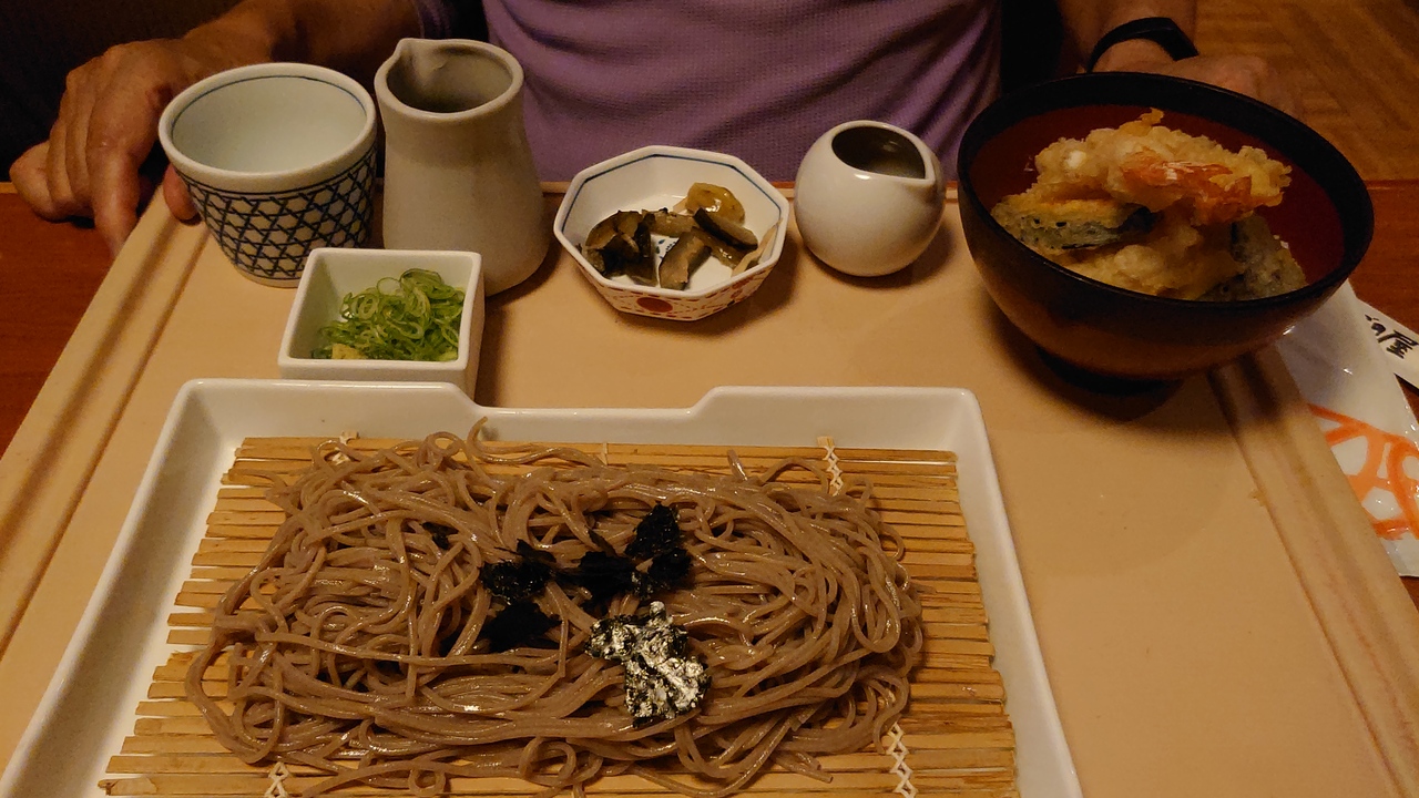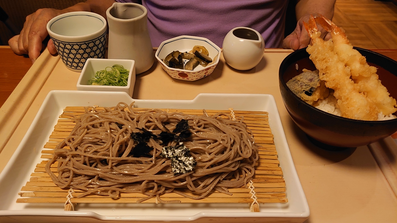 夫はミニ天丼付きのざるそば、私は鴨なんばんつけ汁のそばをいただいた。私のは量的に少なめでしたが美味しかったです。男性なら大盛が良さそうですね。