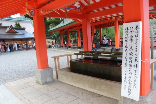 今回は晴天、ゆえに眺望がよかったです。コロナ対策ゆえ、手水では柄杓が撤去されています。