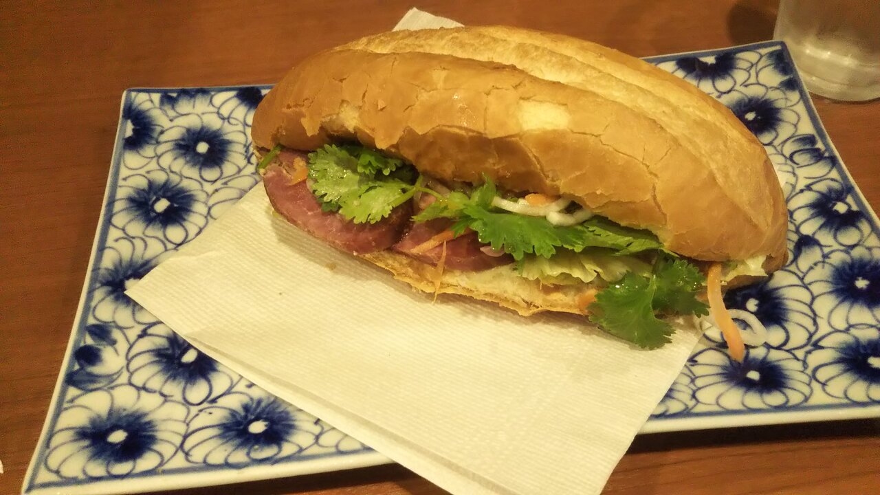 パクチーもたっぷり入っていましたが焼き豚やソースのうまみで程よくマッチして美味、ベトナム旅行で食べたバインミーを思い出しました。