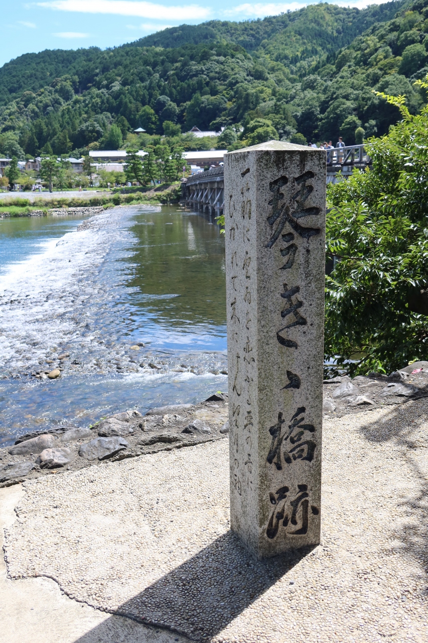京都 嵐山の桂川に架かる渡月橋の北詰の袂に琴きき橋跡碑が立てられています。この石碑をのぞき込む人はすくないですが、高倉天皇と小督局のエピソードは平家物語に記され、琴きき橋はその中に登場する橋です。車折神社嵐山頓宮は桂川を挟んだ南側にあり、物語の世界が想像できます。