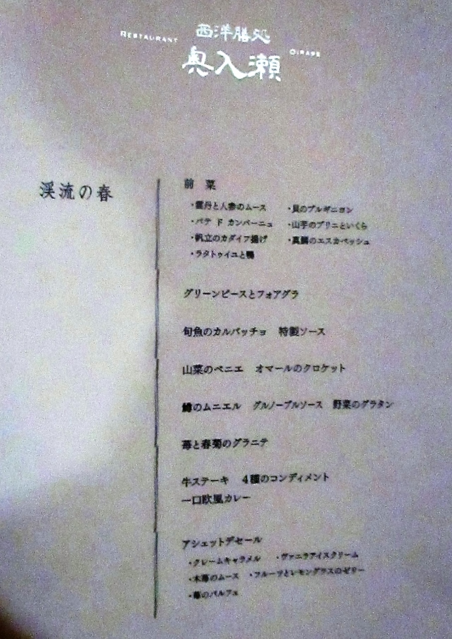 リゾートホテルらしい落ち着いた雰囲気でゆったりしたレストランで、深みのある独特の風合いをそなえた焼き物「津軽金山焼」の食器で供される「渓流の春」というコース料理を食べました。