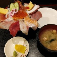 器からはみ出るように盛り付けられたネタの数々、久しぶりの市場で味わう海鮮丼に期待が持てる。