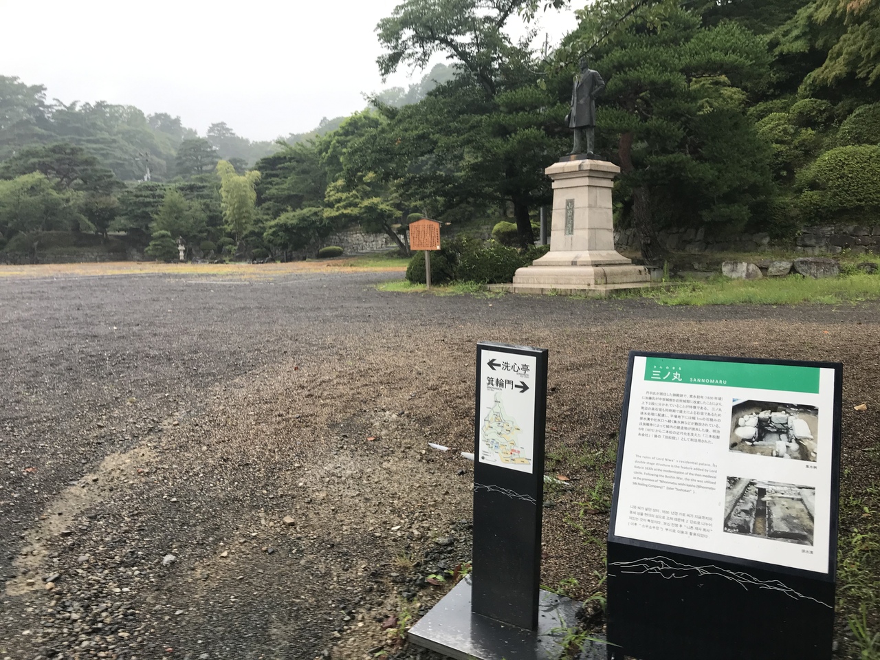 徒歩で、東北本線二本松駅から丘陵地を超え(上り下りがある道)箕輪門までは15分程、箕輪門から天守台までは急坂を上り10分程。