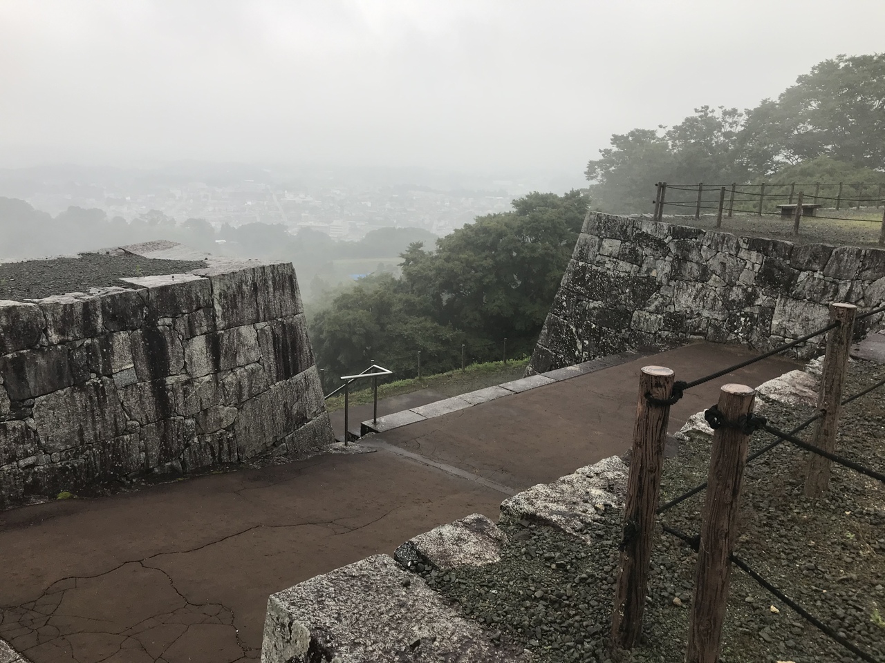 城跡は「霞ヶ城公園」として整備され、遺構は各曲輪と石垣・再建された箕輪門・山上の本丸には再構築された天守台がある。天守台からの眺望は開けている(訪問時は小雨の天気で視界不良)。