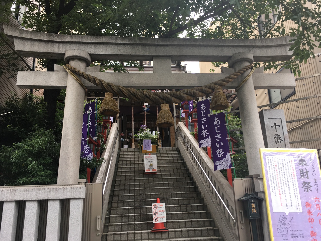 十番稲荷神社は、地下鉄大江戸線「麻布十番駅」直ぐのところに鎮座しています。6月に近辺を散策した時に参拝しました。あじさい祭りが行われていました。いろいろな紫陽花の鉢が境内に奉納されていました。紫陽花は梅雨の時期にマッチする花です。この神社は、昔は、末広神社(慶長年間創建)及び竹長稲荷神社(弘仁十三年創建)でしたが。昭和24年の戦災により焼失した為に、戦後、現在の場所に移り合祀して十番稲荷神社と改称したとのことです。神社仏閣に興味がある方は参拝されては如何でしょうか。