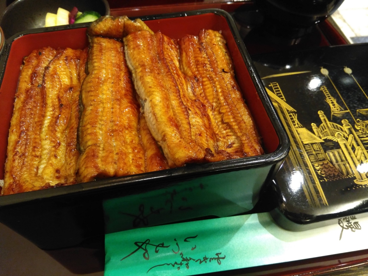 デパ地下1Fにある鰻のいずもやさんの限定10食を食べてきました。通常は6000円位する鰻お重が限定10食3000円(税抜き)で食べられます。10時開店ですが9時20分位に行ったら一番最後でした。ぎりぎりセーフです。10時と同時に店内へ案内してくれますが席が埋まってしまったので30分後くらいに来てください、と限定の文字がかかれば札をもって店内で時間をつぶしました。鰻自体はあっさりとして身がふっくら たれは好みにもよりますが甘さがあくてあっさりしています。山椒も辛みが少ない食べやすいうな重でした。