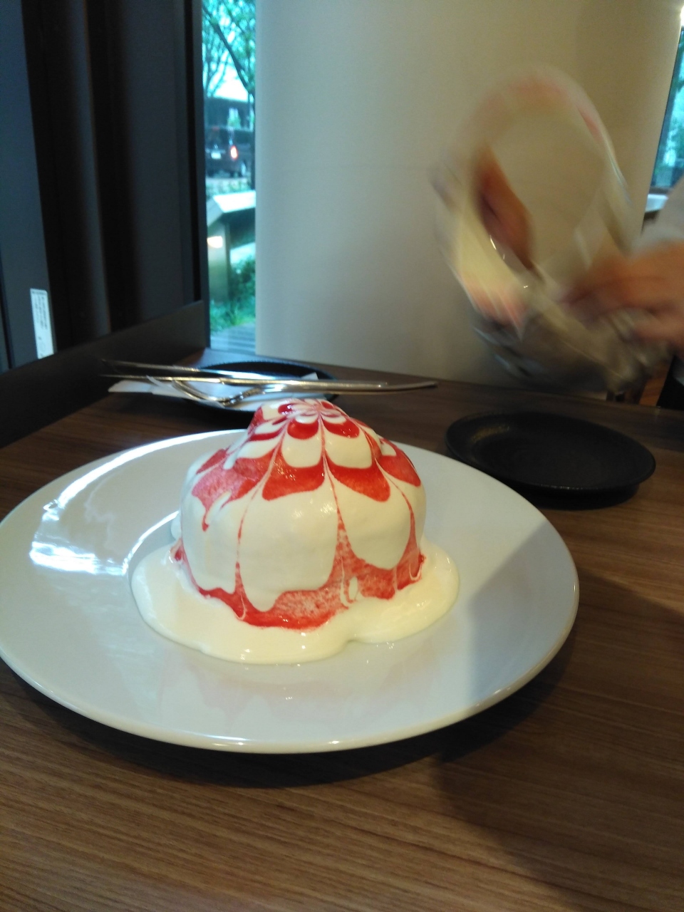 北海道の白い恋人が有名ないしやのカフェで30分待ってパンケーキと季節限定抹茶とラズベリーのパフェをいただきました。パフェはドリンクとセットになっていてお得です。クリも入っていてなかなかの食べ応えです。パンケーキは注文時に30分位時間がかかる事を聞いていたので先にコーヒーと紅茶を頼んでおきました。イチゴのパンケーキは見た目も華やかでまさにインスタ映え。味はクリームがとっても新鮮でパンケーキ部分はもっちりしていました。