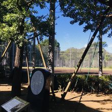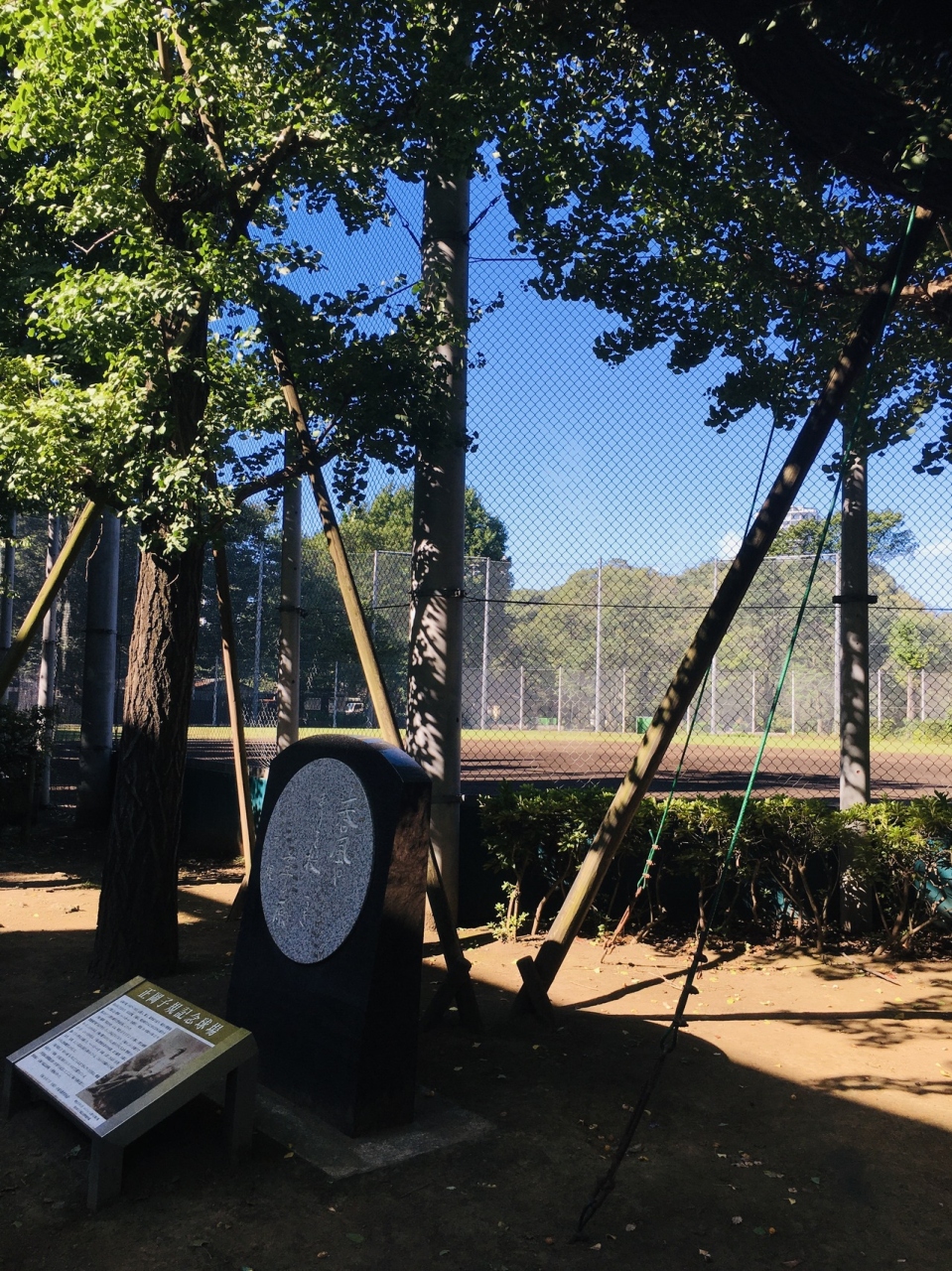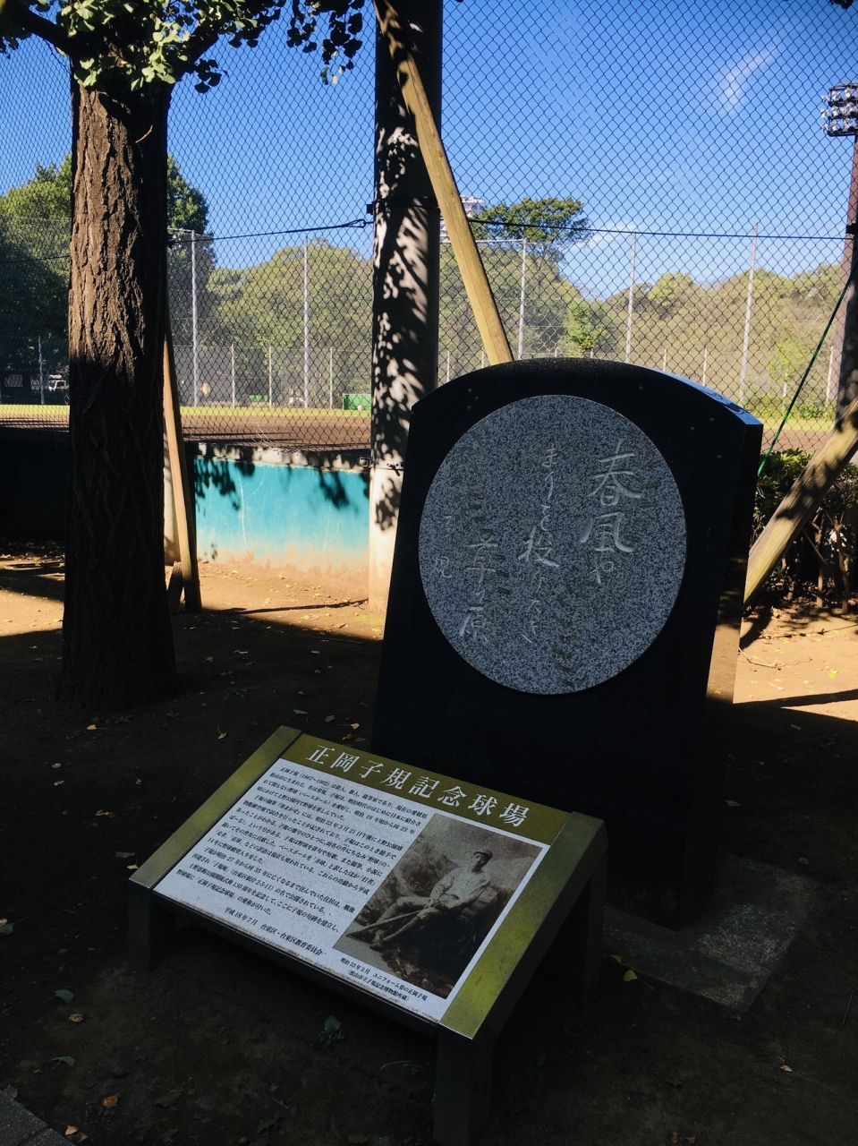 上野恩賜公園内にある広い野球場でナイター設備もあり1.3塁側の両方にベンチもあり本格的な野球場でした。小さなスコアボードもあります。正岡子規の経歴と写真が飾られていて黒い石碑の中にはボール型の中に文字が刻まれていました。