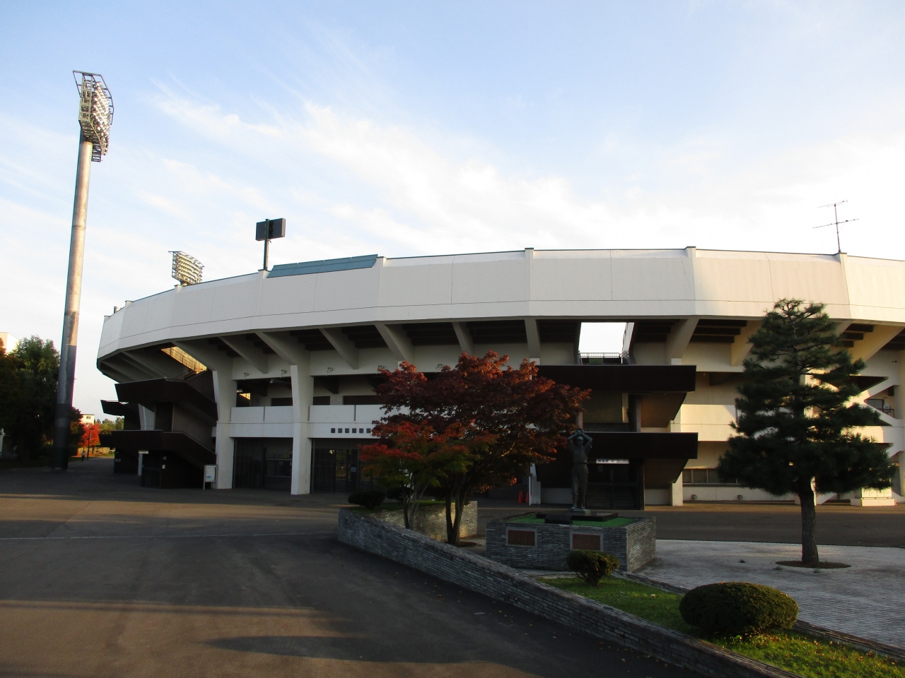 旭川市内にある野球場です。1932年、旭川市営球場として完成しましたが、その後、1984年に改築した際、ジャイアンツなどのプロ野球球団に在籍して303勝もした旭川出身の名投手ヴィクトル・スタルヒンの功績を称えて、現在の旭川スタルヒン球場になりました。