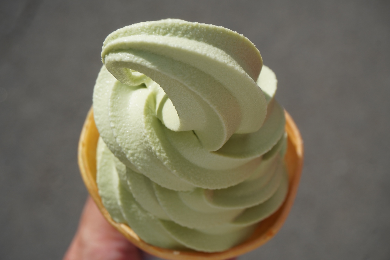 なおすけは、戸隠神社の奥社に向かう参道入り口。大きな構えで、ここしかないので目立ちます。いただいたのは、くまざさソフトクリーム。ちょっと怪しいかなと思いましたが、そんなことはない。たぶん、くまざさの関係で緑色をしていますが、とってもさわやかな味わい。くまざさは置いておいて、おいしいソフトクリームです。