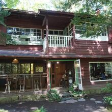 旧軽井沢Cafe 涼の音は、室生犀星記念館の向かい側。ショーハウスと同じ構造という建物もいいですが、林の中に整備された前庭の雰囲気の良さもちょっと特筆。つまり、しゃれた別荘でお茶をするといった雰囲気がそのまま味わえるという趣向ですね。テラス席で前庭を見下ろしながらお茶をしましたが、ちょっと夢見心地の気持ちになりました。