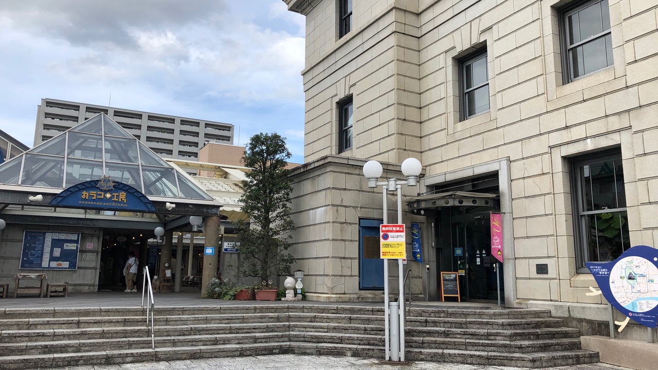 旧日本銀行松江支店の建物を利用した商業施設です。飲食店や雑貨屋、手作り体験工房などが集まっています。飲食店は、しじみラーメン・割子そばの店や、島根県邑南町の牛乳を使ったソフトクリームがおいしいカフェなど、島根らしい店もあります。