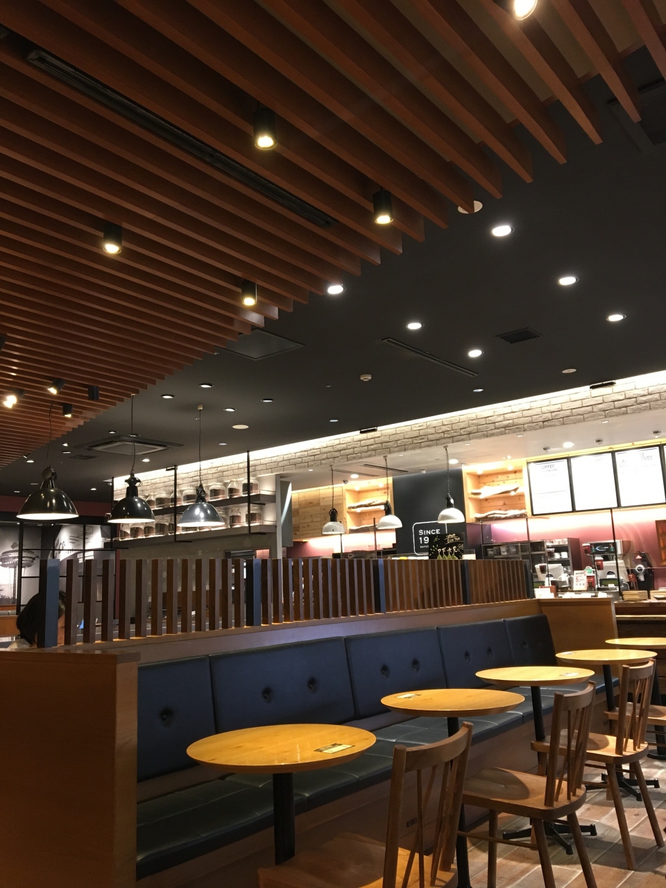 もはや日本全国どこにでもある感じのお手軽カフェ。イートインでもプラコップのお気楽感。店内は広々としているので満席になることはないのではないかと思うほど。コロナ対策で座席には座らないようにとの注意書きもあり他人との距離が保たれるようになっている。