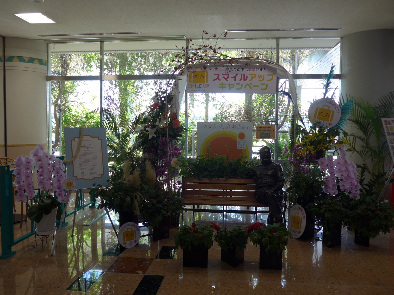 周辺には南国ムードが漂う植物が植えられていて異国に着いた感じがします。新型コロナウィルスの感染拡大の影響で利用客がまだ元に戻っていない様子でしたが利用客は徐々に戻っている感じがしました。