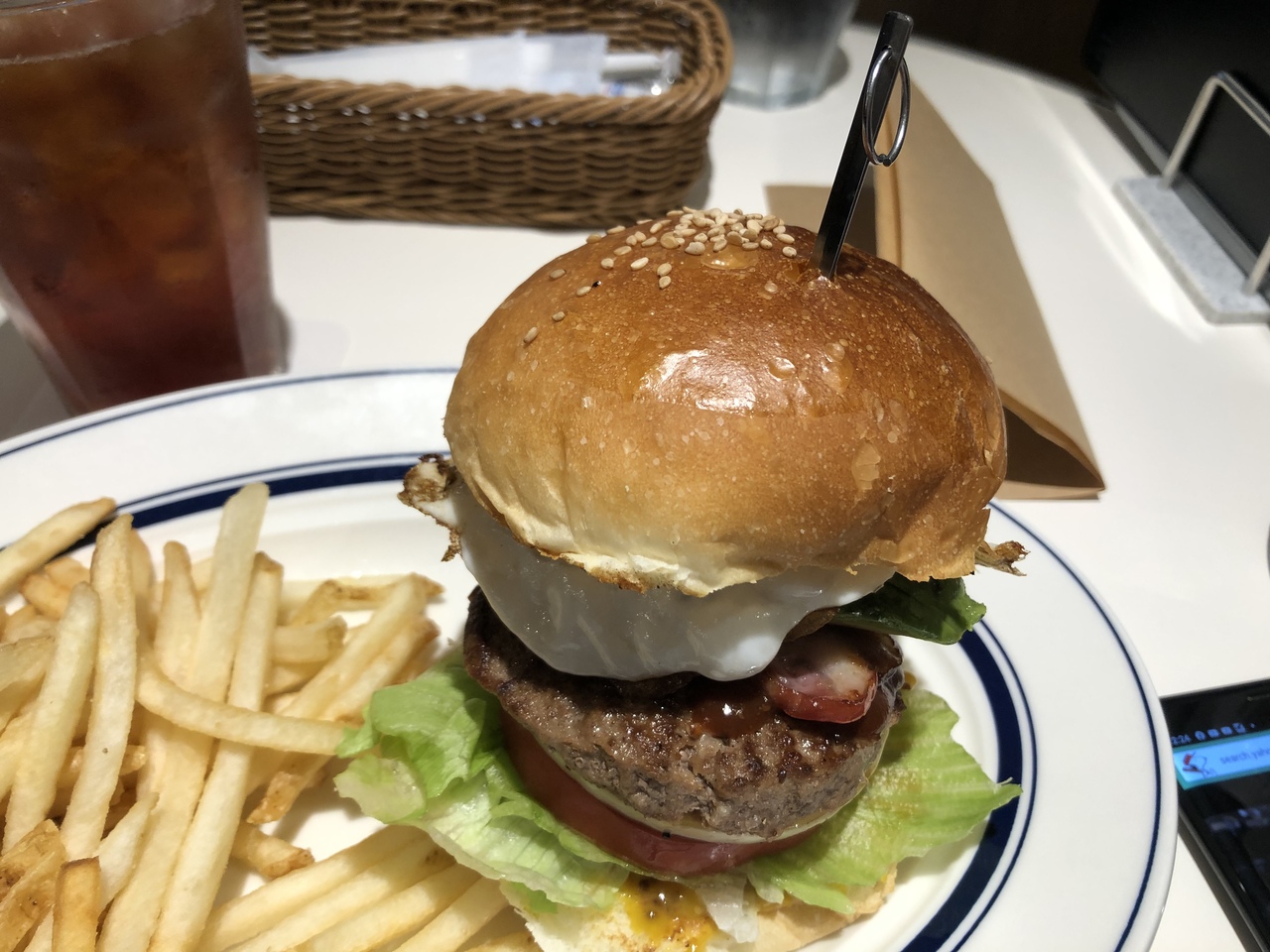 東京駅グランスタに、2020年8月、新規オープンしたお店。本格的な「ハンバーガー」とニューヨークのストリートフード「オーバーライス」がメイン。ハンバーガーかオーバーライスで迷いましたが、今回はネットで評判のよいビートバーガーをオーダー。注文してから5分くらいして運ばれてきたてビートバーガーは、簡単に言うとアボガドベーコンバーガーですが、「これぞアメリカン」というくらいのボリュームに圧倒。店員さんから「紙の袋に入れて食べてください」とのアドバイスがあり、ハンバーガーを袋に包んで食べる。口を大きく開けないと食べられないくらいの大きさで、バンズを押さえて一口。「うまい!」。上のバンズはザックリ、下のバンズは柔らかい。パティは少し硬めでパサパサしていますが、アボガドと玉ねぎで水分を補っているので、トータルでのパサパサ感はない。水分がバンズに染み込みすぎないのも良い。これはリピートあり。大手チェーン店では絶対に食べられない、ハンバーガーのトータルでの美味しさがわかる味。これまで食べたハンバーガーのトップ5に入るかも。ポテトもカリカリして美味。実は、2013年まで有楽町駅の高架下にお店を構えていたお店で、JR東日本の子会社が運営。少し高めだが、駅にいることを忘れてしまいそうなお店です。