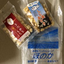 女満別空港がある大空町の特産品が充実しているお店です。女満別空港近くにある「道の駅メルヘンの丘めまんべつ」と関連するお店のようで、同じ商品が売られていました。じゃがいもや玉ねぎの箱単位の購入発送もできました。