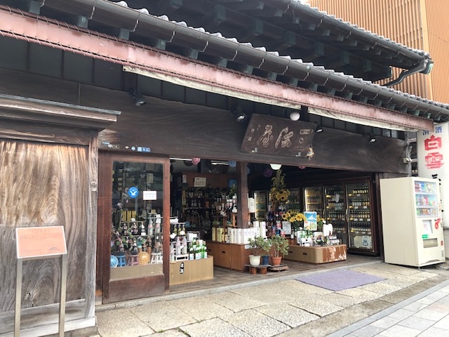 若宮大路の西側の通り沿いにあり、鶴岡八幡宮の入口(三の鳥居)まで歩いて2分ほどの場所にあります。1900年に創業した酒店で、今のこの建物に建て替えられたのは1927年。今も酒店として、店内いっぱいにお酒が並んでいます。