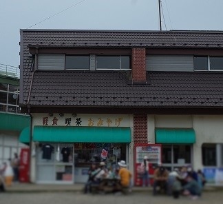 当日は曇天ながら観光客、登山客でにぎわっており、店舗周囲のベンチも満員でした。