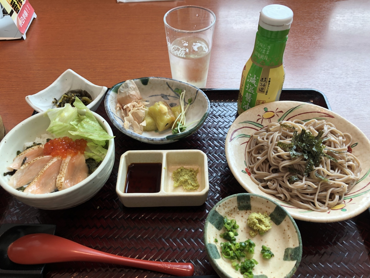 小倉駅上アミュの6階にある定食屋さんです。従妹とランチとおしゃべりをしに行きました。私はミニサーモンといくら丼を頂きました。軽く食べたかったので、サーモンといくらのミニ丼とざるそば。ドリンクバーがついて968円。ソーシャルディスタンスのとれたテーブル席で、美味しく、おしゃべりも楽しみました。