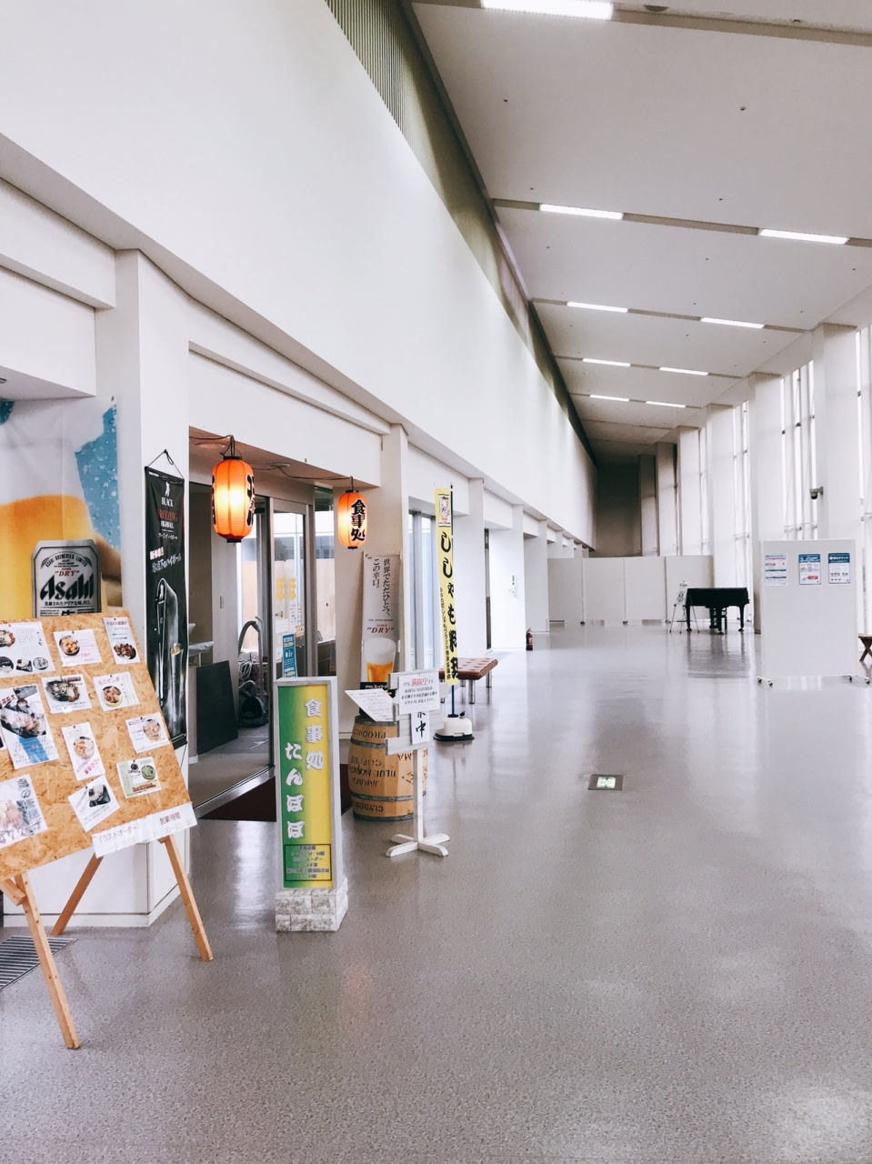 道の駅の入口から真っ直ぐすすんでショップや鈴木章記念ギャラリー前をとおり奥にコーヒーショップがありました。そこは天井が高い「いこいの広場」でここまで来るとみつけられます。