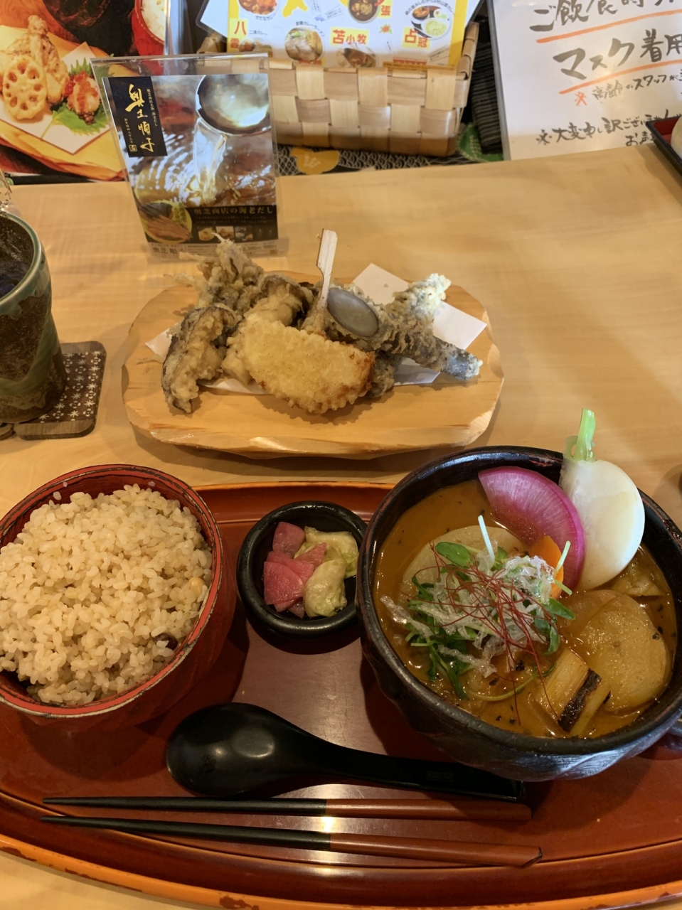 推しは天ぷらのようなので、素直にスープカリーに天ぷら付きで。