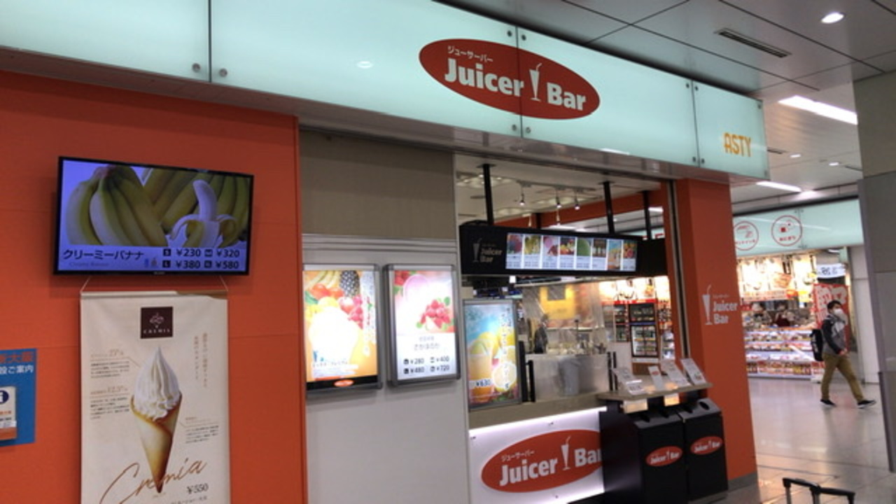JuicerBar 新幹線新大阪店は、東海道・山陽・九州新幹線新大阪駅新幹線改札内にあるジューススタンドです。