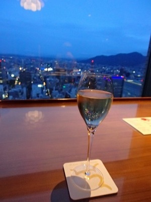 JRタワーの展望台に入るには700円?900円?かかるそうです. それならホテルのバーで一杯やりながら俯瞰しよう、とハッピーアワー17:30を予約. 時節柄、ホテルエレベータ前が関所. ホテルマンが一人ひとりに「どちらへ?」「ご宿泊のお客様ですか?」と問い、検温しなくちゃ先に進めない仕組み. 上に上がって来たら、このフロアにある飲食の受付