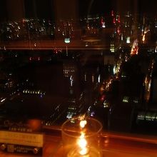 連れ合いが2杯目にorderした誕生月のカクテル、ブルーハワイの色. かき氷のシロップみたい. スナックは「あられ」が一皿でした. waiting barとしては景色もあって良いと思います