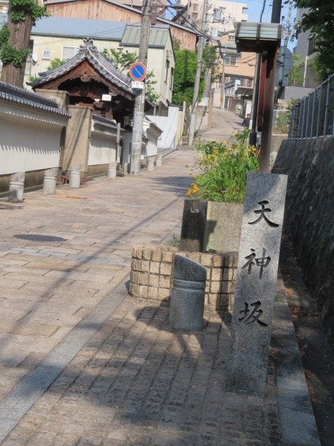 こちらは天王寺七坂の一つで、安井天神に通ずる坂というのが名前の由来です。坂を上っていく入り口に「天神坂」と書かれた石碑があります。案外道幅が狭いため、上っている途中に車とすれ違うこともなかったです。古い家も多く、のんびり景色を楽しみながら上りましょう。