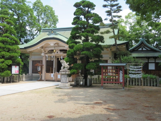大阪七坂の愛染坂を登った所に、大阪七宮の大江神社があります。境内には、松尾芭蕉の句碑もあります。おそらく、旅好きの松尾芭蕉が浮瀬亭とともに、この大江神社も訪れたのでしょう。本堂は、屋根の緑と壁のクリーム色の組み合わせが良くあっている芸術品です。