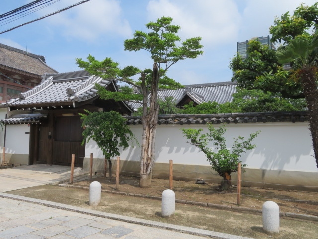 こちらは、四天王寺の中心の賑わいから少し離れた場所にあります。山門の戸の横に表札のような小さな板に「東光院」と書かれています。こちらには入ることが出来ず、この小さな表札は目立たないようにしているようにも思えます。周囲を白壁が取り囲み、四天王寺の聖域という雰囲気です。