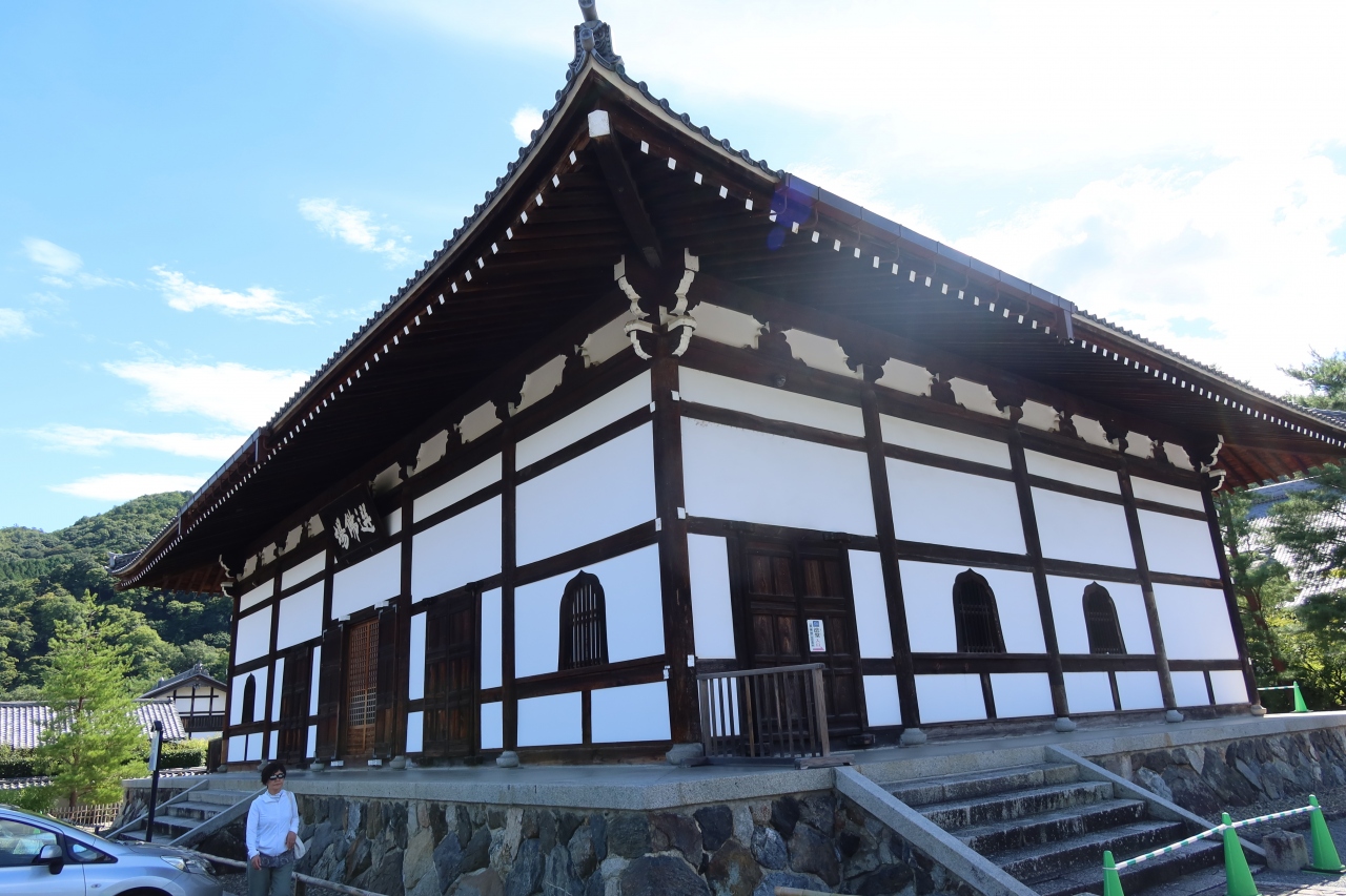 天龍寺の大方丈の東に建つ建物が法堂です。瓦葺寄棟造りの法堂は雲居庵禅堂を移築再建したもので、天井の描かれた加山又造の八方睨み龍が有名です。しかし、特別参拝の期間しか見られず、さらに庭園、方丈とは別料金がかかります。今回は暑かったこともあり、外観だけの見学にしました。