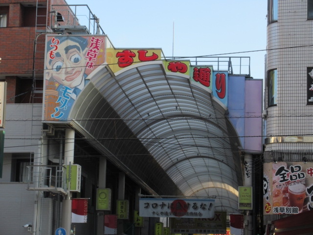 浅草にある商店街の一つです。浅草と俵町の間にある商店街で、入り口にイラスト付きの看板があるので目立ちました。商店街はアーケードになっていて、「コロナに負けるな」という垂れ幕もありました。すしやという名前だけど、寿司屋だけではなく飲食店が多く入っていました。ちょっと懐かしい感じの雰囲気の場所でした。
