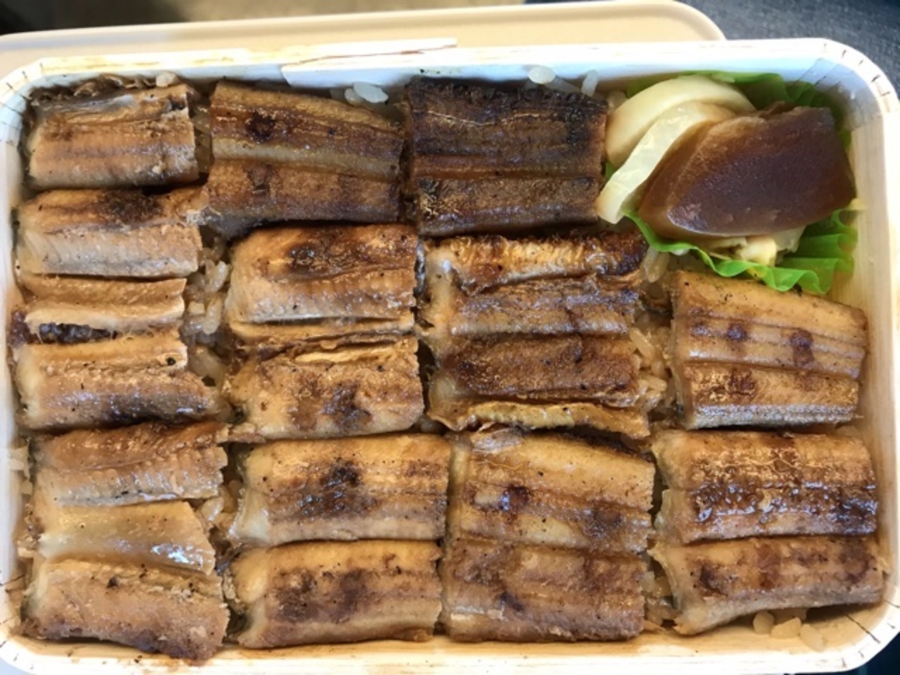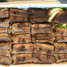 経木の蓋を開けると、あなごの出汁で炊いたもちもちのご飯の上に、香ばしく焼けたあなごがみっちり。