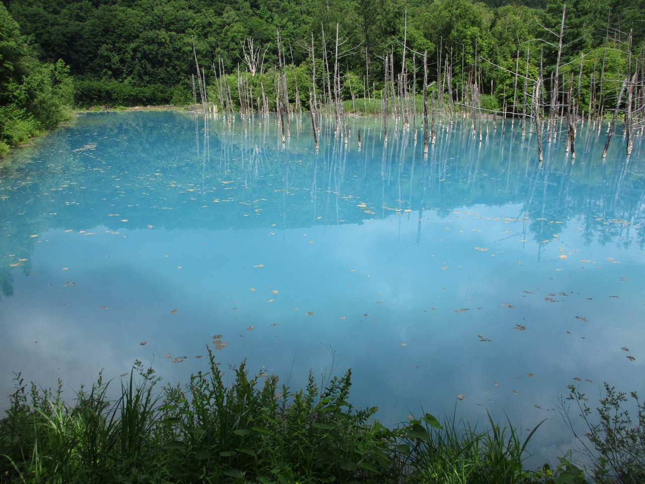 美瑛観光の新名所と聞いて行きました。白金温泉のすぐ近くにあります。7月初めに行ったのですが、快晴の天気で、晴れ男健在でした。乳青色と言うような色で涼し気でした。北海道ではありますが、暑い日で思わず飛び込んでしまいたい気分になりました。