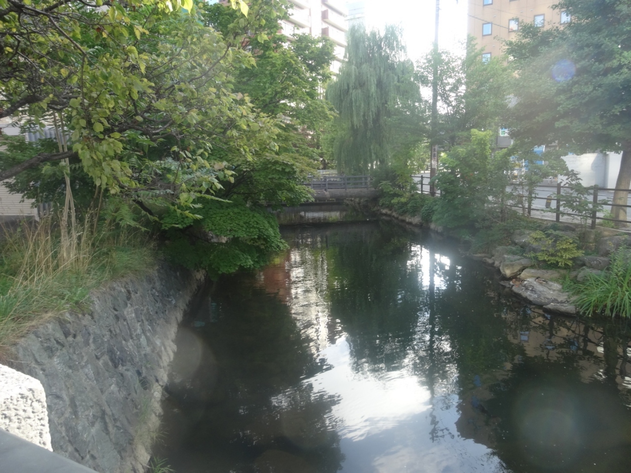 札幌市内を流れる細くて雰囲気のいい小川です。豊平川という大きな川の支流のようです。