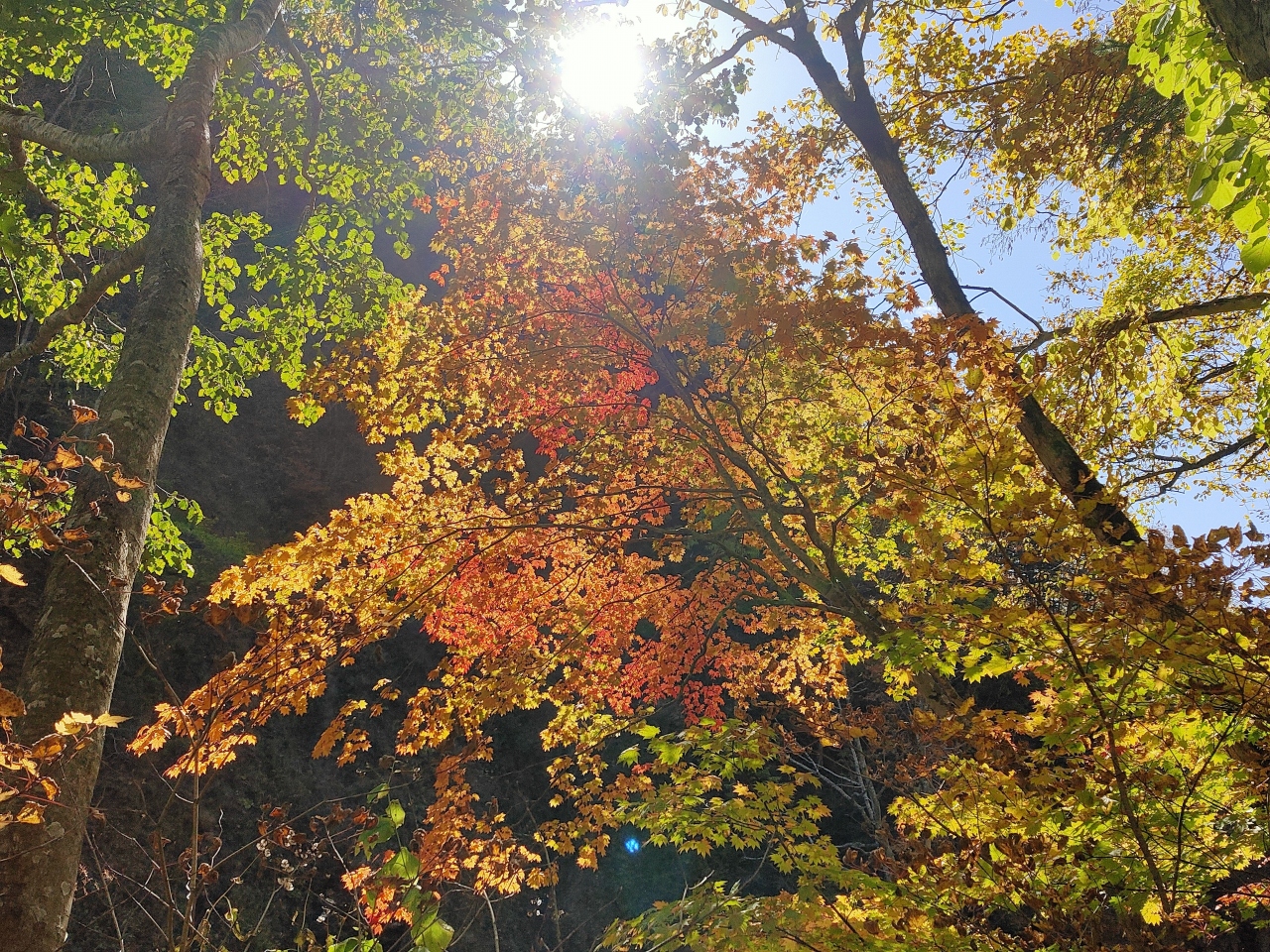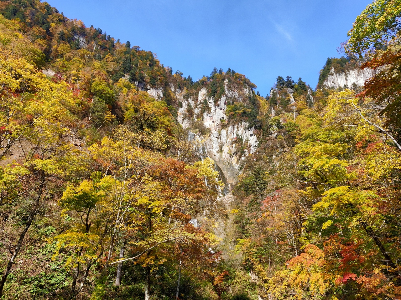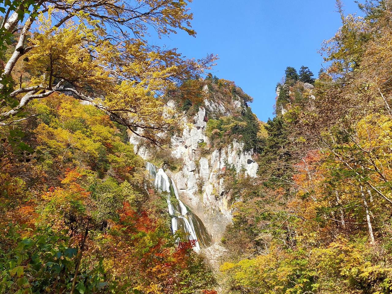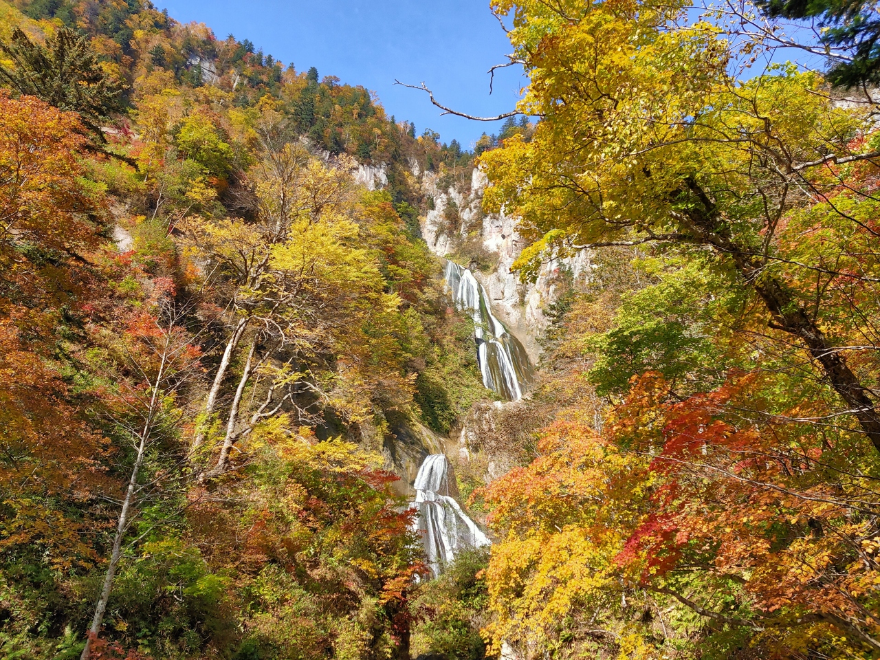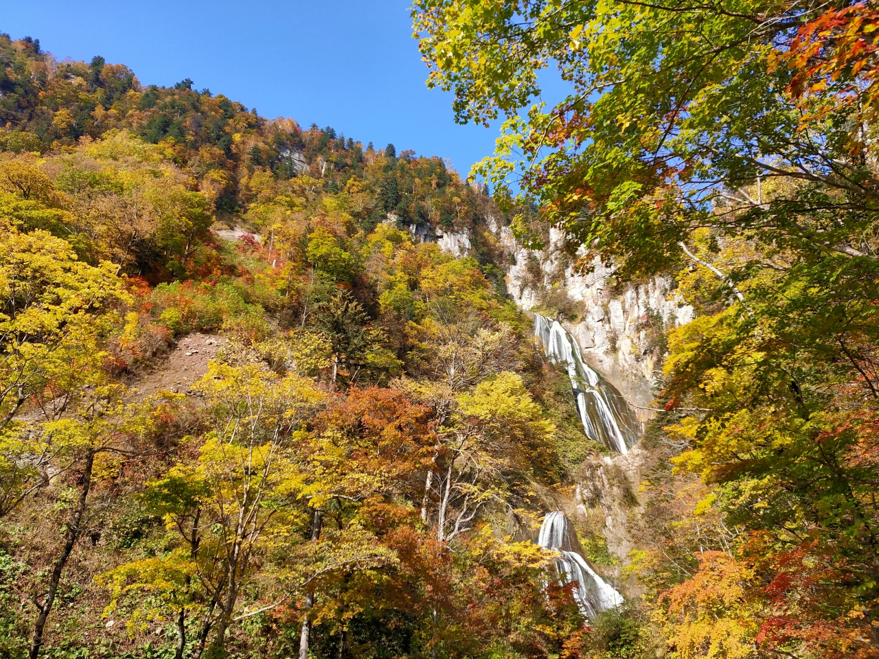 紅葉の頃は、滝が映えて美しく、2020年の気候で言えば、10月10日辺りがまだ落葉もそれほどでもなく、きれいに見ることができました。