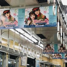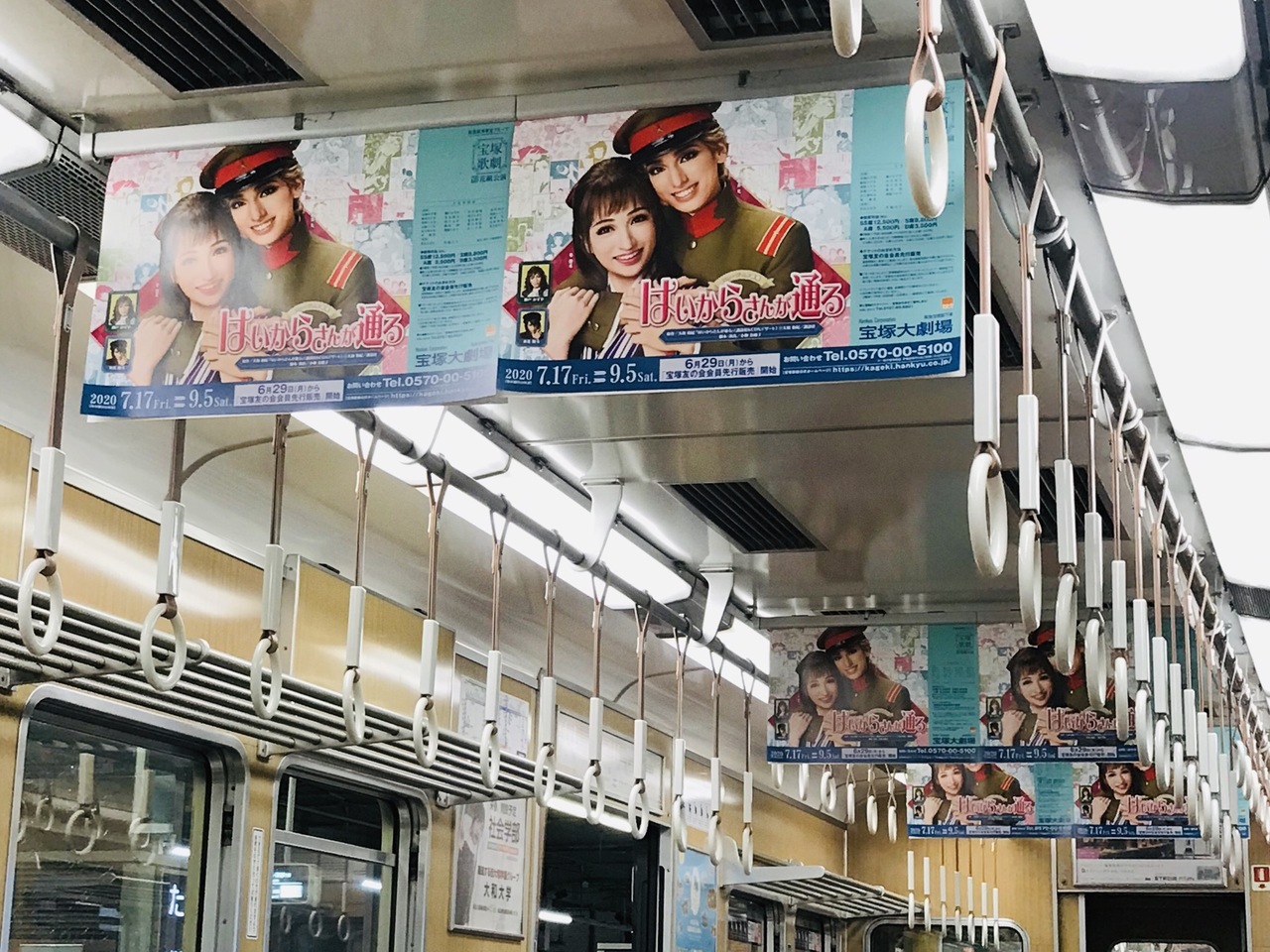 さすが宝塚線だけあって車内はヅカ関係の広告が多く、場合によっては吊り広告全て公演ポスターだったりします(笑)。