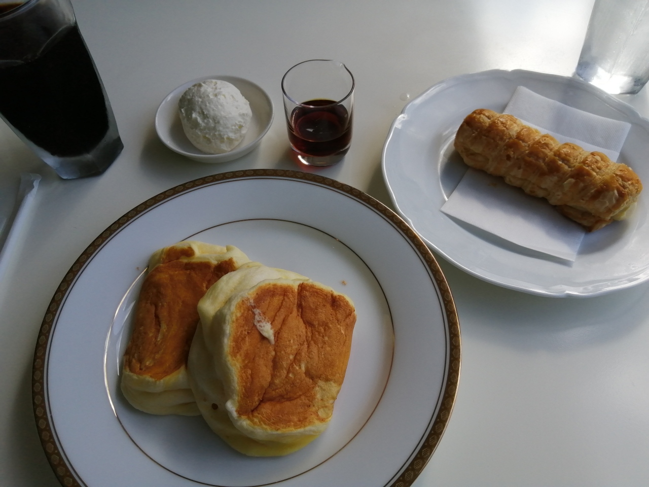 私はフワフワのパンケーキと賞味期限3時間で有名なサクサクパイを頂きました